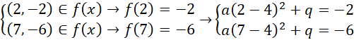 Dla dwóch punktów lezących na paraboli ułóżmy układ równań: