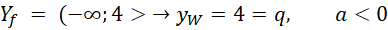 Z podanego przedziału wartości funkcji można ustalić y-ową współrzędną wierzchołka W: