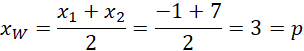 Z argumentów miejsc zerowych możemy wyliczyć x-ową współrzędną wierzchołka W paraboli funkcji: