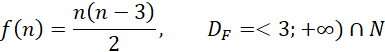 Wzór na funkcję liczby przekątnych w wielokącie o ilości boków n: