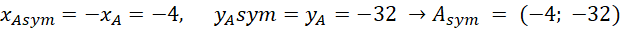 Punkt symetrycznie położony do punktu A względem osi y ma współrzędne: A. (-4, –32).