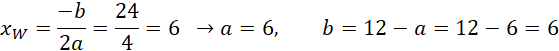Musisz zapisać wzór funkcji opisanej w poleceniu oraz obliczyć wierzchołek jej paraboli.