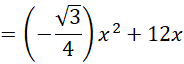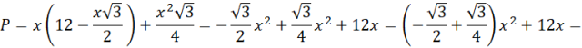 Wzór na zadanej figury można zapisać jako sumę prostokąta o bokach x i 12-x oraz trójkąta równobocznego o boku x: