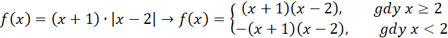 Musisz przekształcić zapis funkcji za pomocą nawiasu przypadków dla konkretnych przedziałów, obliczyć wartości funkcji w dowolnych punktach dla każdego z przedziałów oraz na ich podstawie narysować wykres złożony.
