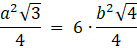Przyjmij, że bok trójkąta ma długość a, a sześciokąta b: