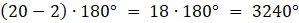 Podaj, ile wynosi suma miar wszystkich kątów w dwudziestokącie.