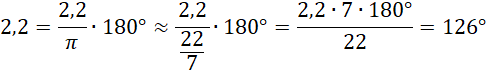 Najpierw zamień radiany na stopnie. W tym przypadku można skorzystać z przybliżenia