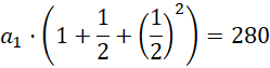 W tym zadaniu musisz znaleźć sumę pierwszych siedmiu wyrazów ciągu geometrycznego, wiedząc, że suma początkowych trzech jego wyrazów to 280, natomiast suma trzech kolejnych to 35.