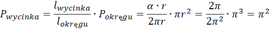 W tym zadaniu musisz policzyć pole wycinka, który powstaje po wycięciu z okręgu o promieniu π przez kąt środkowy, mający 2 radiany.