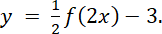 Naszkicowany wykres funkcji musisz zwęzić dwukrotnie na osi OY, następnie rozszerzyć dwukrotnie na osi OX i przenieść o 3 jednostki do dołu.