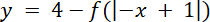 Naszkicowany wykres funkcji musisz przenieść o 1 jednostkę w lewo oraz odbić względem osi OY. Następnie zmazać wszystko to, co znajduje się na lewo od osi OY i odbić tam to, co znajduje się na prawo od tej osi. Powstały wykres musisz odbić względem osi OX i podnieść o 4 jednostki do góry.