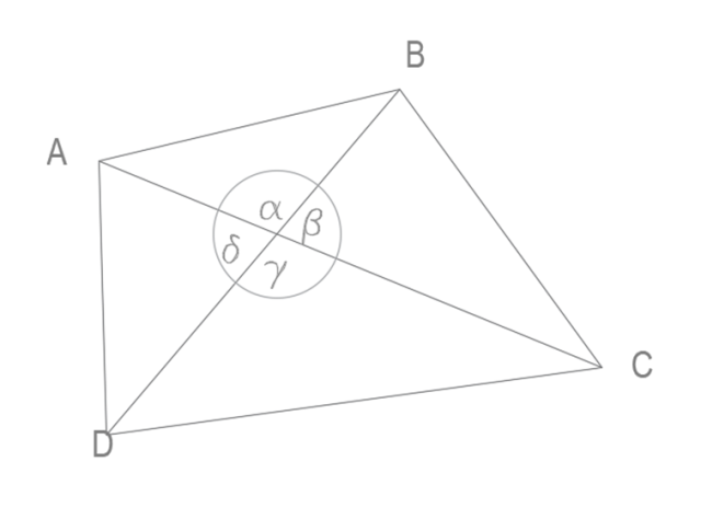 Dany jest czworokąt wypukły. Przekątne podzieliły go na 4 trójkąty. Wykaż, że opisane na nich okręgi mają takie same promienie, gdy ten czworokąt jest rombem.