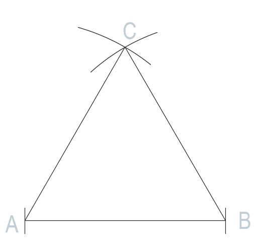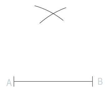 Zmierz cyrklem jego długość, następnie wbij nóżkę cyrkla po kolei w oba końce odcinka i zakreśl dwa przecinające się łuki.