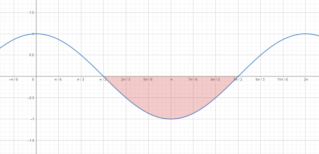 W tym zadaniu powiedzieć na podstawie wykresu, dla jakich x mieszczących się między 0 a 2π y funkcji y = cos x to liczby mniejsze niż zero.
