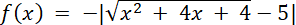 Musisz naszkicować funkcję |x + 2|, czyli funkcję |x| przeniesioną o 2 jednostki w lewo. Następnie powstałą funkcję przenieść o 5 jednostek w dół i przenieść wszystko co pod osią OX – nad nią. Na końcu odbić symetrycznie względem osi OX.