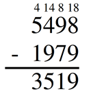 W tym zadaniu oblicz sposobem pisemnym różnicę liczb 5498 i 1979, a następnie określ, jak zmieni się wynik, gdy odjemna będzie o 100 większa.