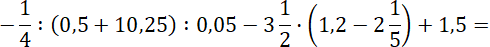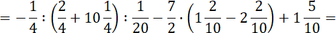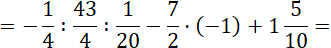 Zamień liczby dziesiętne na ułamki zwykłe. Wykonaj najpierw działania w nawiasach, potem dzielenie i mnożenie, a na końcu dodawanie i odejmowanie. Dzielenie zastąp mnożeniem przez odwrotność dzielnika i skracaj, gdy to możliwe. Pamiętaj, iloczyn lub iloraz liczby ujemnej i dodatniej jest liczbą ujemną. Na końcu wykonaj dodawanie otrzymanych liczb, aby ułatwić sobie liczenie, najpierw dodaj do siebie liczby mieszane o takich samych mianownikach, a dodawanie liczby ujemnej zastąp odejmowaniem liczby do niej przeciwnej.