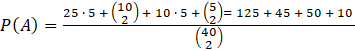 W tym zadaniu musisz obliczyć prawdopodobieństwo wygrania co najmniej 20 zł, jeśli w loterii jest 40 losów: 5 wygrywających 20 zł, 10 wygrywających 10 zł i 25 pustych losów i losujemy dwa losy.