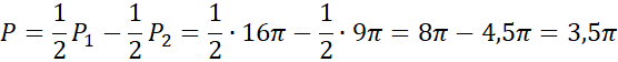 Zauważ, że figura składa się z połowy koła o promieniu 4 i wyciętej z niego połowy koła o promieniu 3. W pierwszej kolejności oblicz pola i obwody pełnych kół o tych promieniach. Skorzystaj ze wzorów