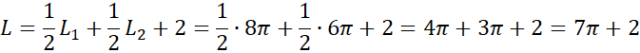 Na koniec odejmij od siebie odpowiednie połowy kół i dodaj wszystkie części obwodu figury.