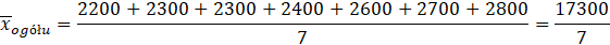 Wyznacz średnią arytmetyczną i odchylenie standardowe, uwzględniając oraz nie, wynagrodzenie pracownika o najmniejszym przychodzie, wiedząc, że dla wszystkich siedmiu pracowników piekarni wyglądają następująco
