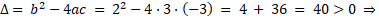 następnie określamy znak wyróżnika trójmianu kwadratowego.