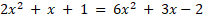Określ ilość punktów wspólnych wykresów funkcji kwadratowych f(x) = 2x2 + x + 1 i g(x) = 6x2 + 3x – 2.