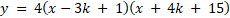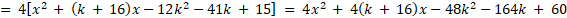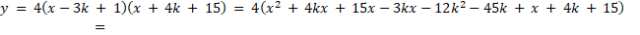 Najpierw przechodzimy z postaci iloczynowej na ogólną, aby móc obliczyć wyróżnik trójmianu, który następnie przyrównujemy do zera i wyznaczamy wartość k.