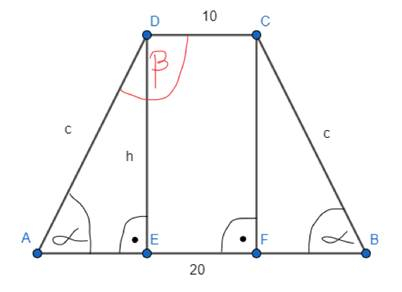 Znając obwód oblicz długość c. Kolejno oblicz |AE| = |FB|. Oblicz długość h z twierdzenia Pitagorasa w trójkącie ADE. Następnie oblicz pole trapezu. Oblicz