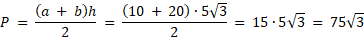 Należy obliczyć pole trapezu równoramiennego oraz miary jego kątów, jeśli wiadomo, że jego obwód wynosi 50, a długości podstaw trapezu wynoszą odpowiednio 10 i 20.