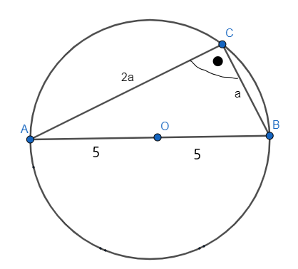 Trójkąt prostokątny został umieszczony wewnątrz okręgu o promieniu 5 cm. Oblicz pole tego trójkąta, mając informację, że jedna z przyprostokątnych jest dwukrotnie dłuższa od drugiej.