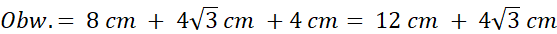 Mając podaną długość najdłuższego boku: 8 cm oraz najmniejszy kąt 30°, oblicz obwód trójkąta prostokątnego.