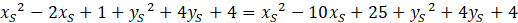 Mając dane proste o równaniach 2x – y – 4 = 0, 2x + y – 8 = 0 i y + 2 = 0, których przecięcia wyznaczają wierzchołki trójkąta, określ położenie środka okręgu, w który wpisano ten trójkąt.