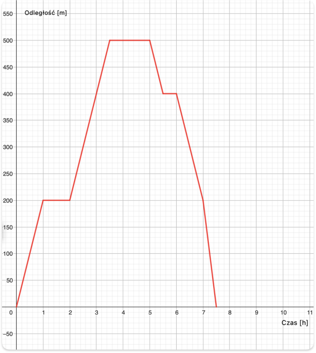 W tym zadaniu musisz odczytać z wykresu jak długo trwał rejs statku, jeżeli wykres przedstawia zależność jak zmieniała się odległość kutra od portu w zależności od czasu rejsu.