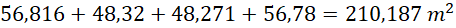 Dodaj powierzchnię każdego mieszkania (na każdym piętrze są cztery takie same).