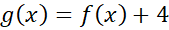 Zapis mówi nam, że funkcja f została przesunięta o 4 jednostki do góry wzdłuż osi OY. Wraz z tą transformacją zmieni się zbiór wartości funkcji. Dziedzina zostanie bez zmian, ponieważ poruszamy się po osi OY, a nie po OX.