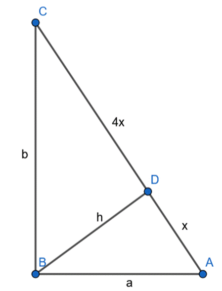 Wyznacz stosunek pól trójkątów, na które wysokość dzieli ten trójkąt, jeśli w trójkącie prostokątnym wysokość opuszczona na przeciwprostokątną dzieli ją w stosunku 1:4.