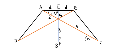 Korzystając z obliczonych długości odcinków w podpunkcie a), możesz, korzystając z twierdzenia Pitagorasa, obliczyć długość odcinka d. Następnie pomnożyć tę długość razy 2, aby otrzymać długość krótszej podstawy tego trapezu.
