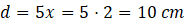 Wiedząc, że x jest równe 2 cm, oblicz długość przekątnej opisanej jako 5x.