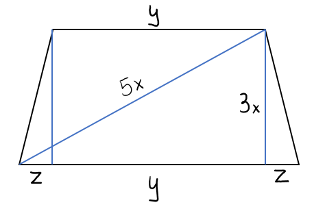 W tym zadaniu musisz obliczyć długość przekątnej, wiedząc, że stosunek długości wysokości do długości przekątnej jest równy 3:5, pole tego trapezu wynosi .