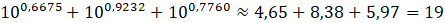 Skorzystaj z tablic logarytmów i oblicz sumę.