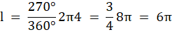 Następnie policz długość łuku okręgu o promieniu 4 wyznaczonego przez kąt 270°