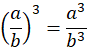 Weź dowolne liczby a i b, z warunkiem, że b jest różne od 0. Na lewej stronie jest wyrażenie opisujące sześcian ilorazu tych liczb, wyrażenie po prawej zaś iloraz sześcianów.