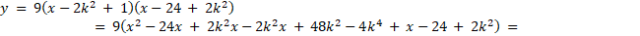 Najpierw przechodzimy z postaci iloczynowej na ogólną, aby móc obliczyć wyróżnik trójmianu, który następnie przyrównujemy do zera i wyznaczamy wartość k.