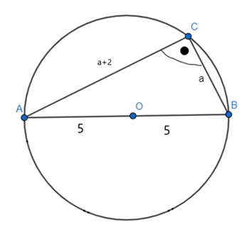 Trójkąt prostokątny został umieszczony wewnątrz okręgu o promieniu 5 cm. Oblicz pole tego trójkąta, mając informację, że jedna z przyprostokątnych jest dłuższa od drugiej o 2 cm.