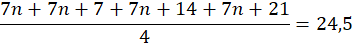W tym zadaniu napisz równanie, które będzie interpretacją podanej informacji: Średnia arytmetyczna czterech kolejnych wielokrotności liczby 7 jest równa 24,5.