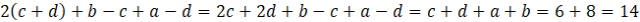 Wiedząc, że suma liczb a i c jest równa 6, a suma liczb b i d jest równa 8, oblicz wartość wyrażenia 2(c + d) +b – c + a – d.