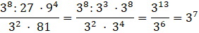 Aby zapisać tę liczbę w postaci jednej potęgi, należy zapisać wszystkie jej elementy w postaci wielokrotności trójki, a następnie pomnożyć i podzielić przez siebie jej potęgi.