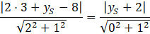 Skoro okrąg jest wpisany w trójkąt, to odległość środka od boków trójkąta jest taka sama, a więc możesz wykorzystać wzór do obliczenia odległości punktu od prostej: