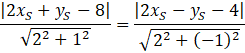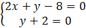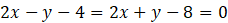 Mając dane proste o równaniach 2x – y – 4 = 0, 2x + y – 8 = 0 i y + 2 = 0, których przecięcia wyznaczają wierzchołki trójkąta, określ położenie środka okręgu, który został wpisany w trójkąt.